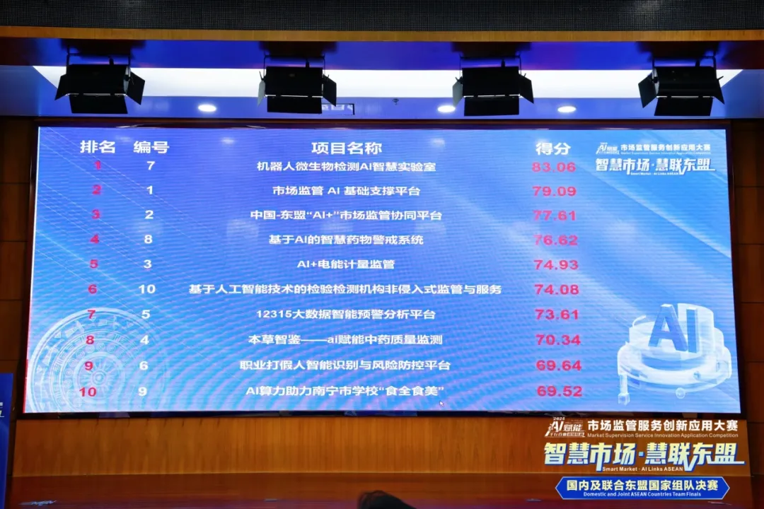 10月30日,以“AI无止境 智创未来”为主题的AI赋能千行百业超级联赛——市场监管服务创新应用大赛路演颁奖盛典在南宁举行,历时三个多月激烈角逐与精心筹备的大赛圆满落下帷幕。