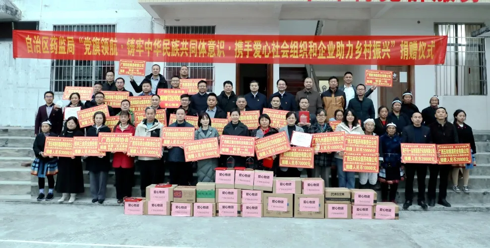 从脱贫攻坚到乡村振兴,广西药监人不但冲在一线,还广泛发动社会各方合力,联合多家企业、协会,握指成拳、聚沙成塔,凝聚起磅礴力量,通过争取政策措施帮扶、项目资金帮扶、捐款捐物帮扶、教育培训帮扶,把爱心撒向最需要的地方和人群。近三年来,联动中华文化发展基金会、港澳博士团及5家社会组织、60余家爱心企业,累计募集资金物资620多万元。设立20余万元教育基金,在关西小学启动午托班项目、扩建爱心食堂,改善100余名学生就餐条件;资助8万元为塘浪村打深近100米水井,解决5个屯1000多人饮水难题。资助3万元为甲坪村建设群众舞台,捐赠办公电脑58台、桌椅25套。新建水柜6个、硬化道路9200多米、铺设排污沟500多米及灌溉管网5300多米。