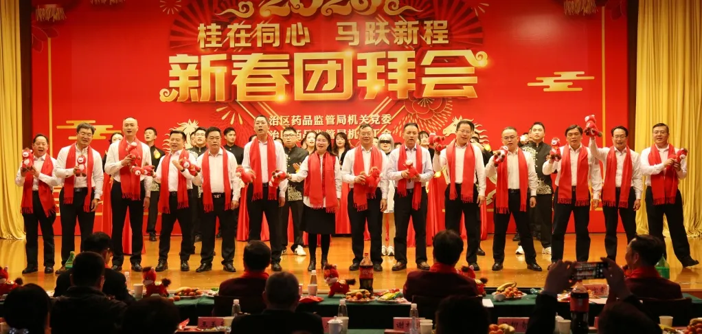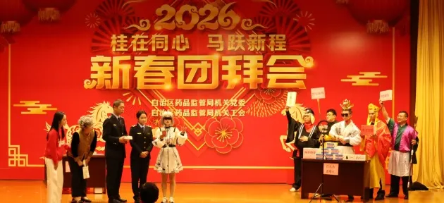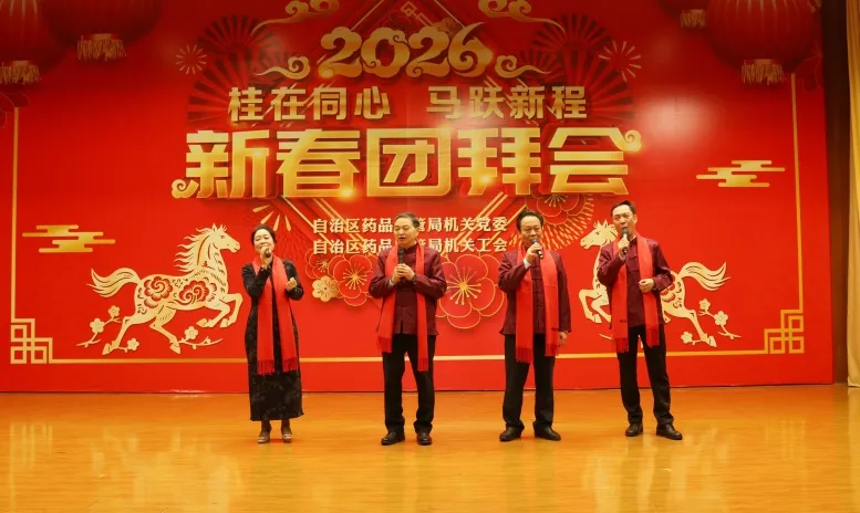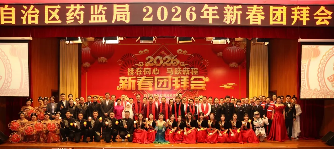 整场团拜会节目精彩纷呈,高潮迭起,充分展现了广西药监人团结奋进的精神风貌和“桂在同心”的凝聚之力。2026年,广西药监系统将继续在局党组的坚强领导下,同心协力,奋楫争先,为筑牢药品安全防线、促进医药产业高质量发展、守护人民健康福祉作出新的更大贡献。
